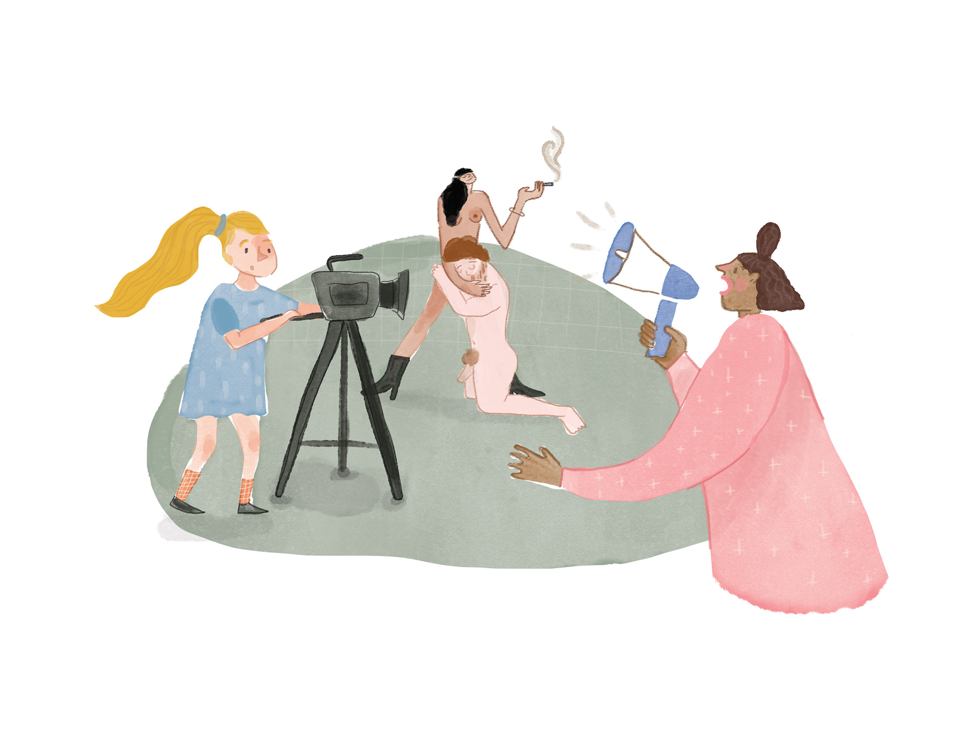 I created a series of seven illustrations for a double-page spread in "Gallery," the weekend magazine of Haaretz newspaper, accompanying an article about emerging trends in adult content for 2022.